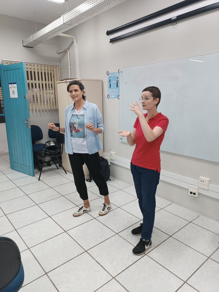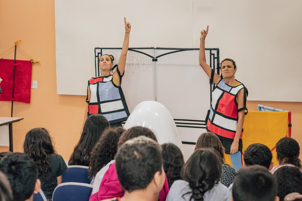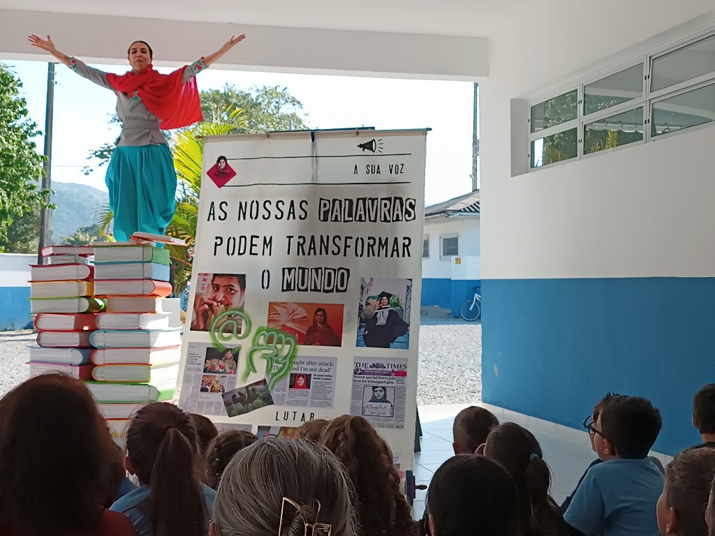 Uma ideia que criei para a contrapartida social do projeto em que levamos, com o Coletivo Mar Cultural, 27 apresentações de teatro gratuitas para escolas públicas e mais 02 ações formativas também gratuitas. Com a palestra-oficina estive nos EJAS Sul e Centro, em Floripa, movimentando as palavras.